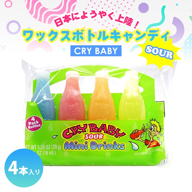 Cry Baby ワックスボトルキャンディ(4本入り) サワー youtube お菓子 アメリカ 韓国 ASMR インスタ youtuber インフルエンサー モッパン動画 カラフル かわいい フルーツ フレーバー シロップ