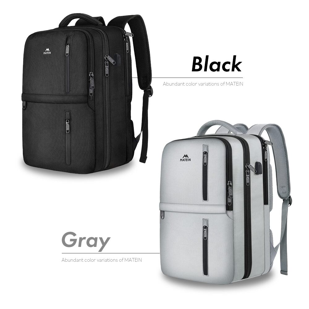 MATEIN エリート トラベルラップトップ バックパック 大容量 40L 旅行 機内持ち込み用 トラベル バックパック 1197 USB充電ポート付き ラップトップ 盗難防止 撥水 グレー ブラック 靴収納 自立 ラゲージストラップ
