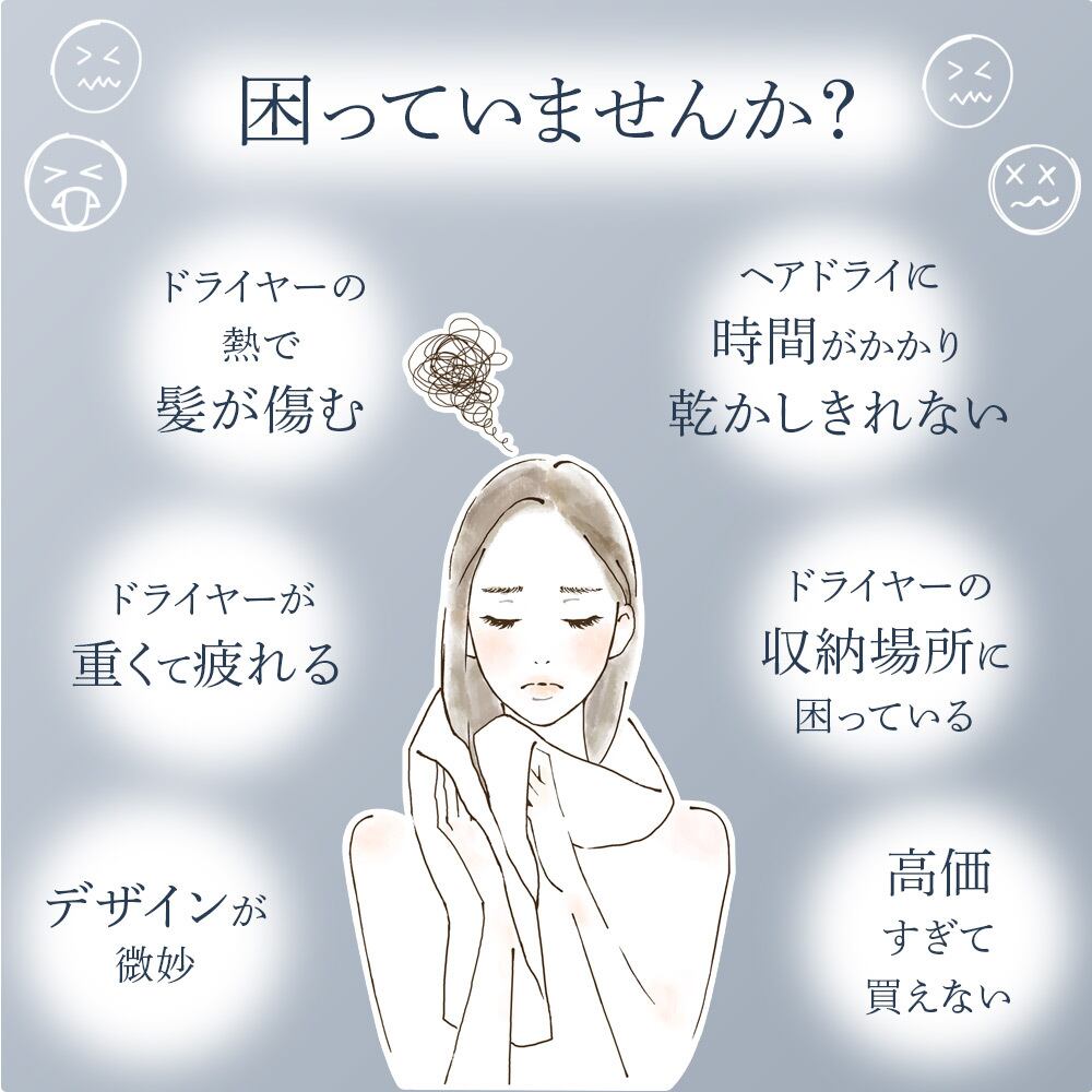 製品の特長として、髪が受ける熱ダメージを抑えながら、大量の速い風を地肌に届けて素早く乾かす仕様となっており、