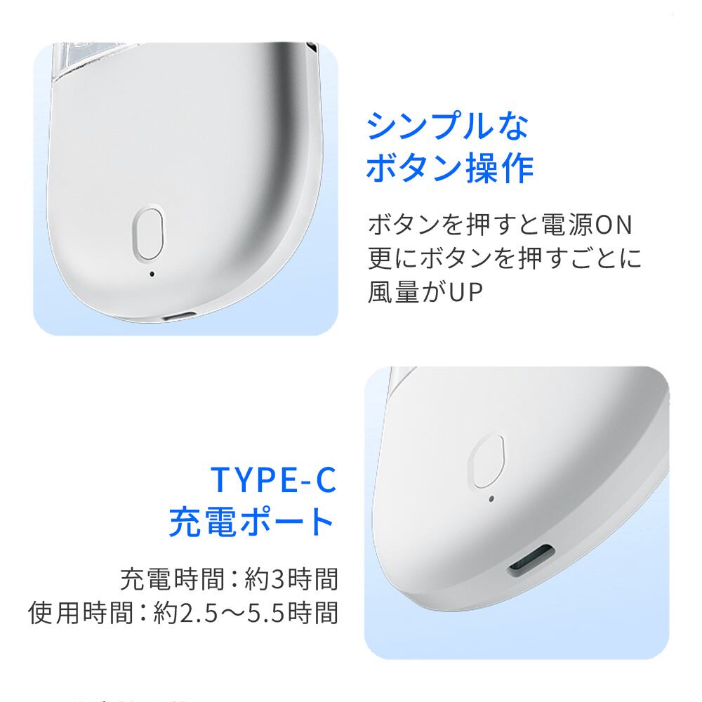 ハンディファン 軽量 クリア 2025 大風量 静音 3Way 手持ち 首かけ 卓上 風量5段階 Type-C対応 ストラップ付き 小型 かわいい 携帯扇風機 卓上扇風機 nikome 折り畳み式クリアハンディファン NKM-FHF01
