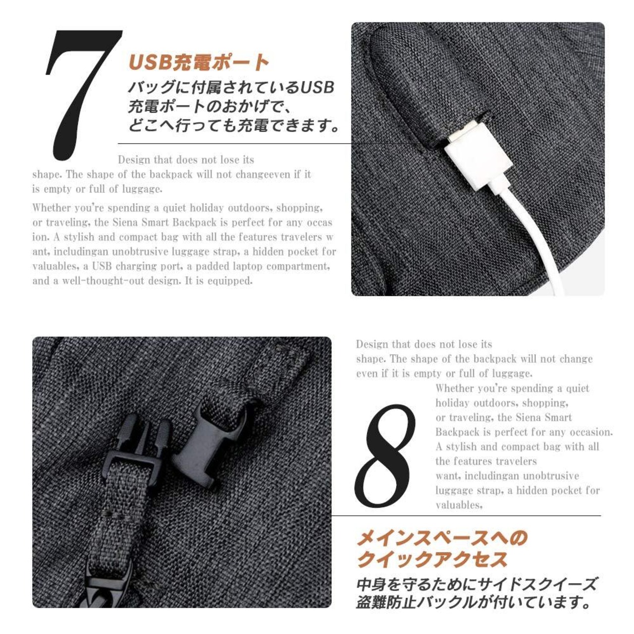 ●大容量のリュックで、週末の小旅行や毎日の通勤に必要なものがすべて入るサイズ