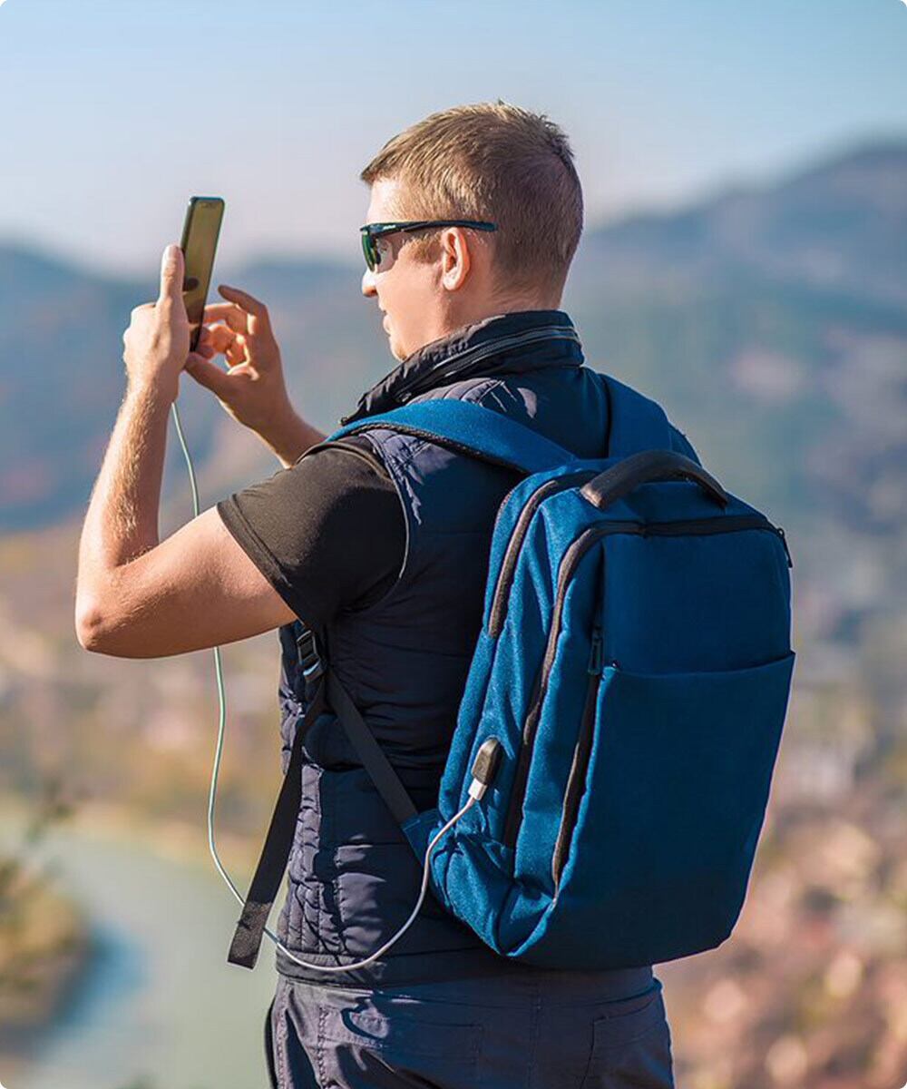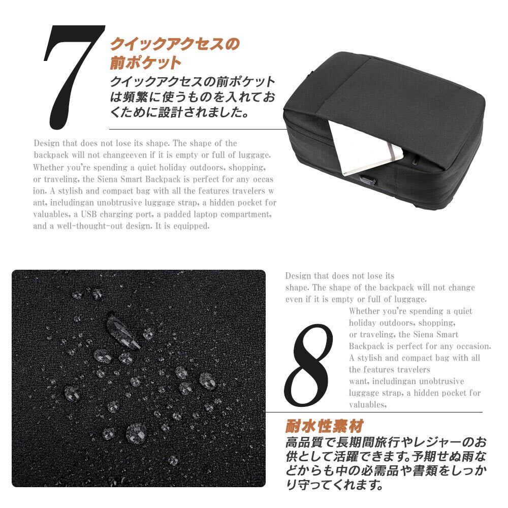 ●USB充電ポート付きで充電器を鞄から出さずに充電可能