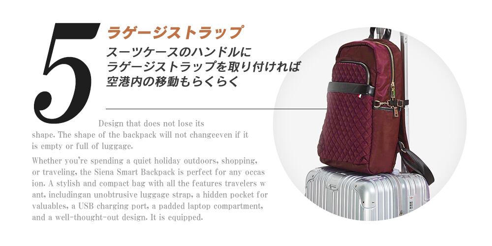 ●ノートパソコン、服、iPadやiPodが入れられる、10個以上の独立したポケット付き