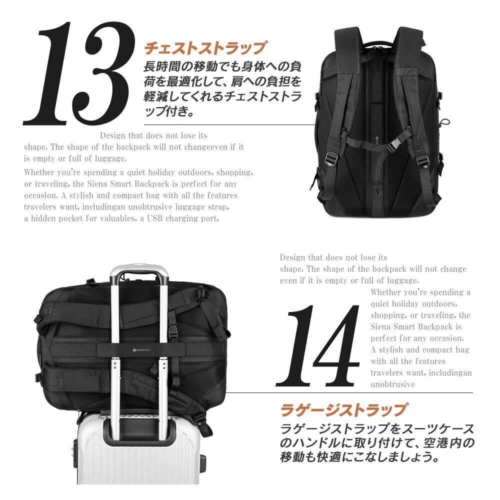 【正規輸入販売代理店】リュック ビジネスリュック ブランド ノルディス Nordace Henge 45Lキャリーオンリュック ND1057 180度開閉 旅行 通勤 PC 耐水 充電 ボトル
