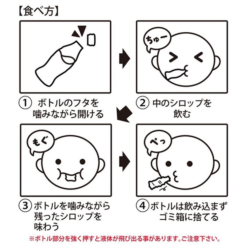 ●カラフルで楽しい見た目と、ワックスボトルに詰まったフルーツフレーバーのシロップを噛みながら味わうのが楽しいお菓子