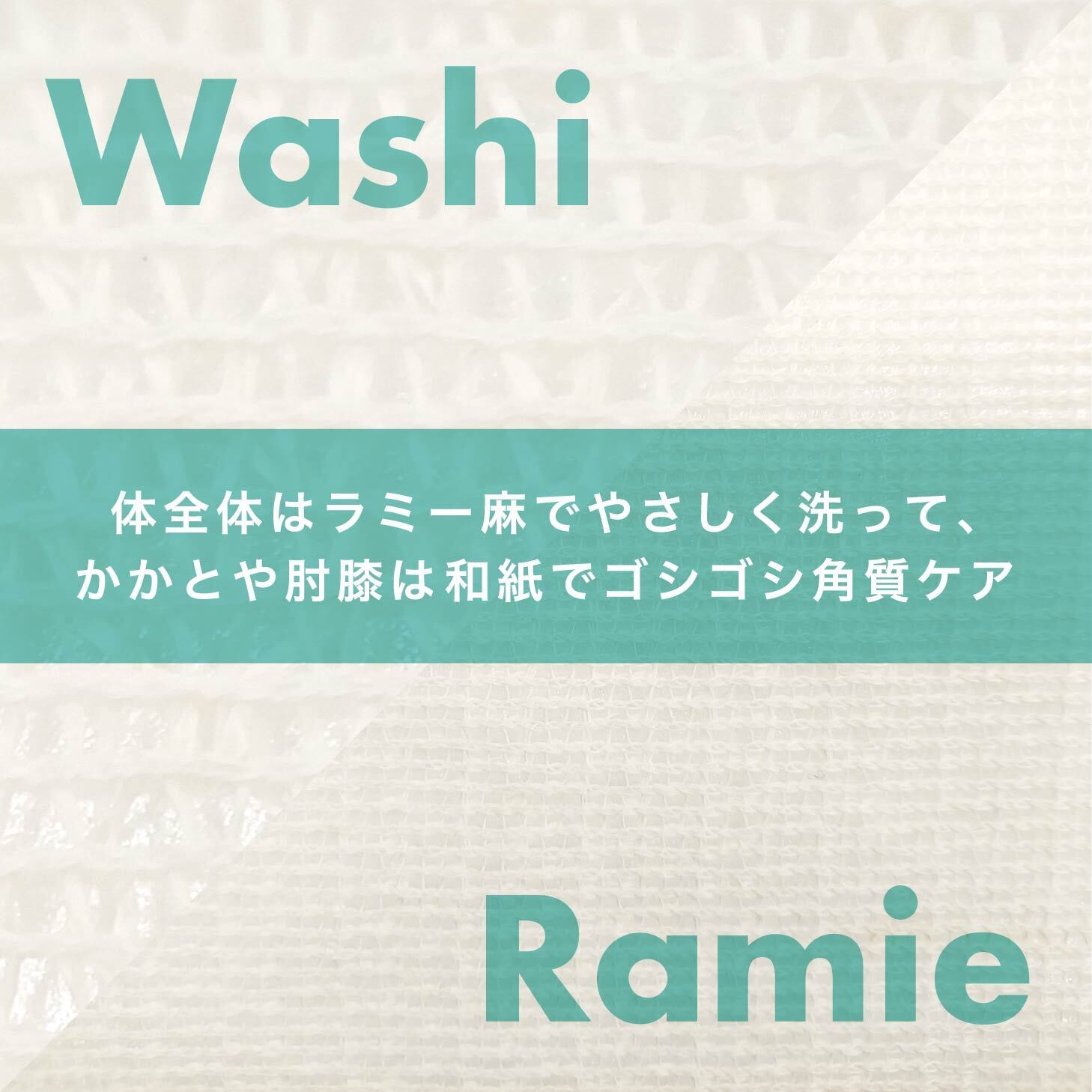 ●天然素材のラミー麻と和紙を使用した、2WAYのボディタオル。
