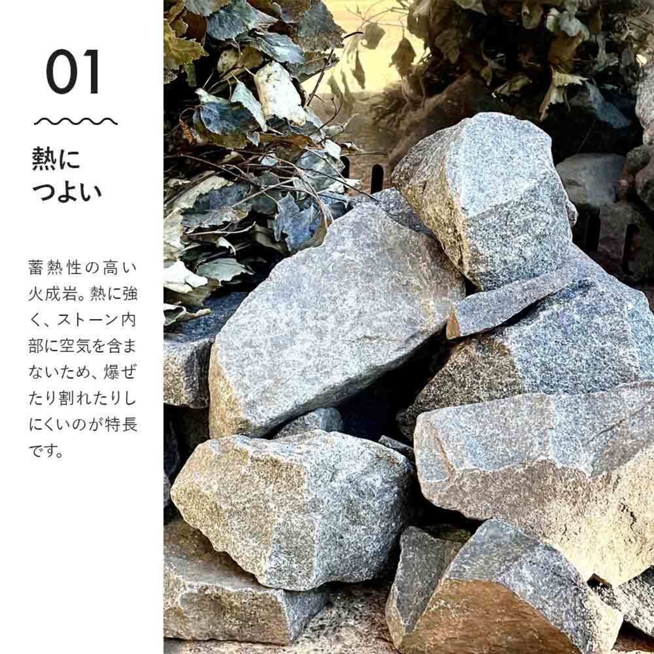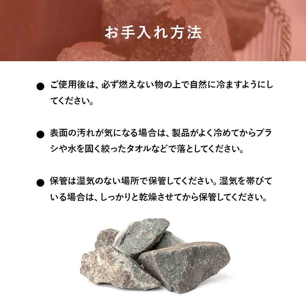 ●このサウナストーンは蓄熱性の高い火成岩(火山岩)の中でも特に強度の高い玄武岩を使用。