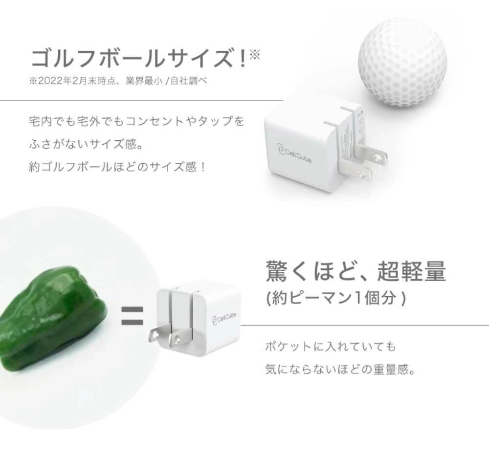 ●プラグ折り畳み式では世界最小3×3cmの超小型ボディ(※2021年11月自社調べ)