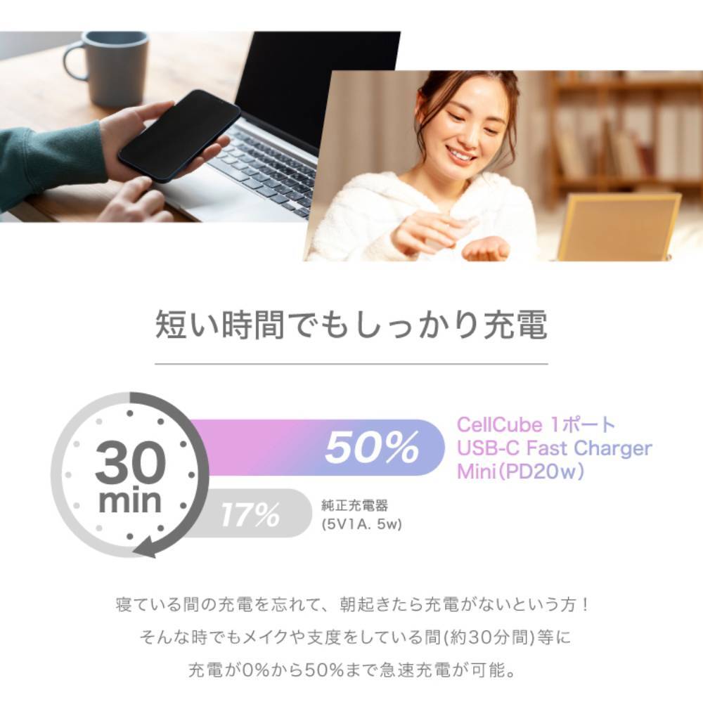 【安全安心 日本ブランド】USB コンセント 急速充電 ACアダプター USB充電器 20w 超ミニサイズ 急速充電器 PSE認証 超小型サイズ PD3.0対応 スマホ タブレット 各種対応 [ CellCube 折り畳み式プラグAC充電器 CC-AC05 ]