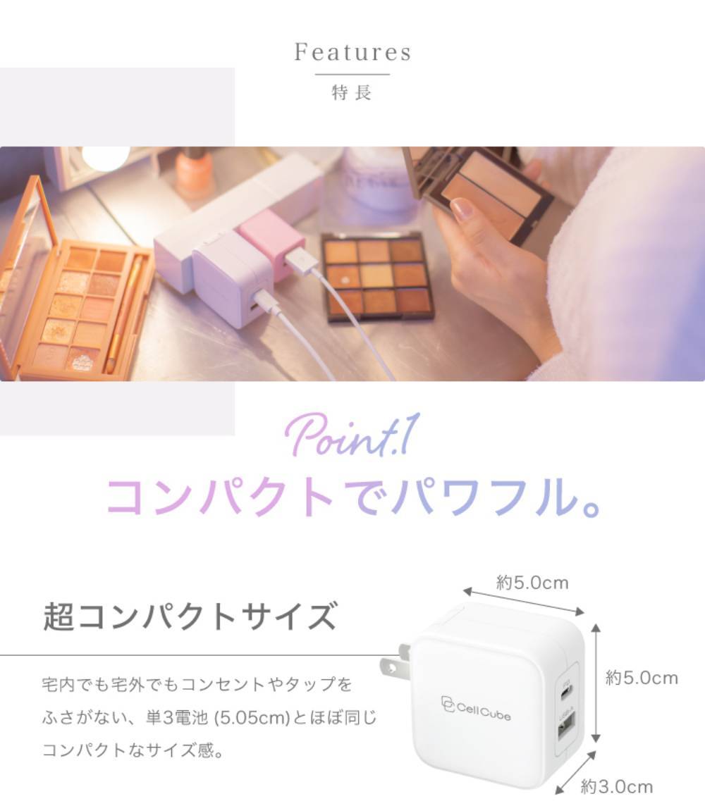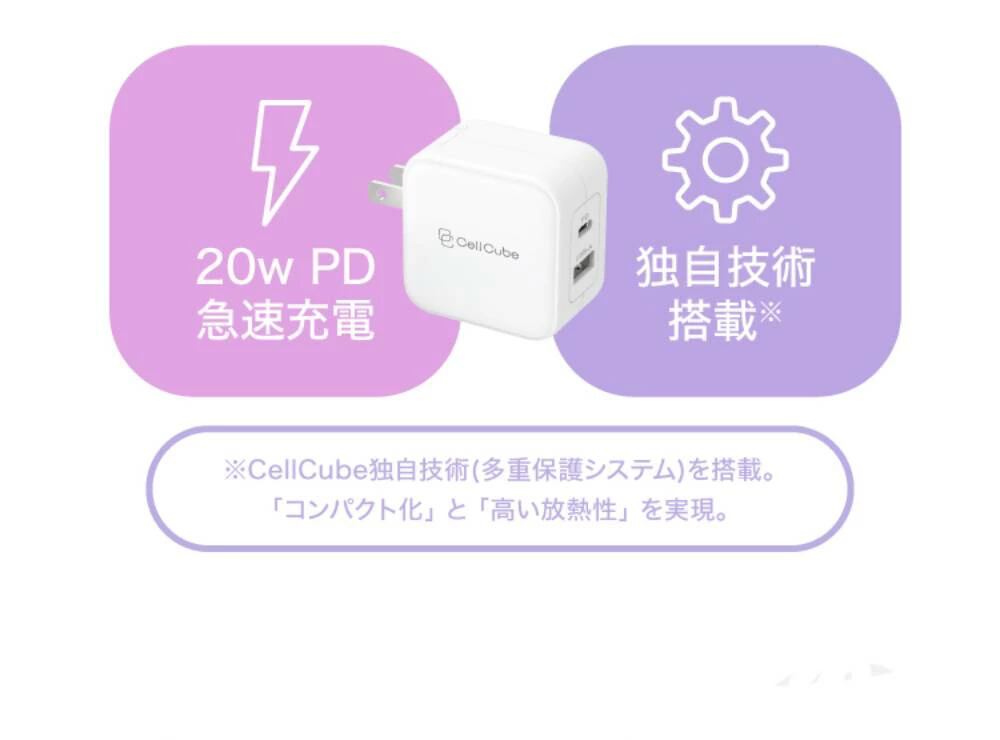 【安全安心 日本ブランド】USB コンセント 急速充電 ACアダプター USB充電器 20w 2ポート USB-A USB-C PSE認証 おしゃれ かわいい パステルカラー PD3.0 QC3.0 スマホ タブレット [ CellCube 折り畳みプラグAC充電器 CC-AC04 ]