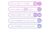●新型iPhone 14 / 14Pro / 14 Plus、タブレットなどの最新機器が急速充電可能です。(USBーC単ポートを使用時)
