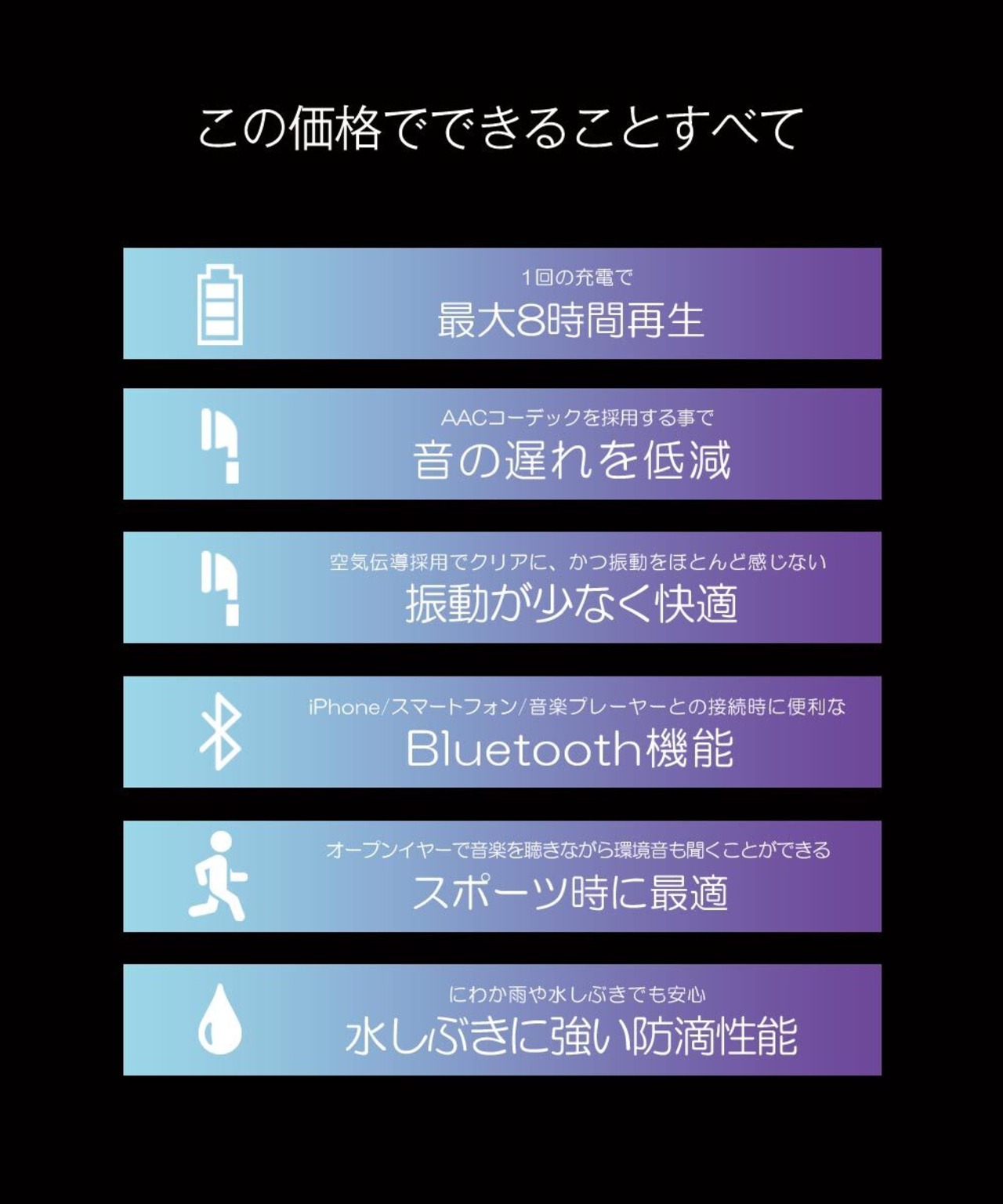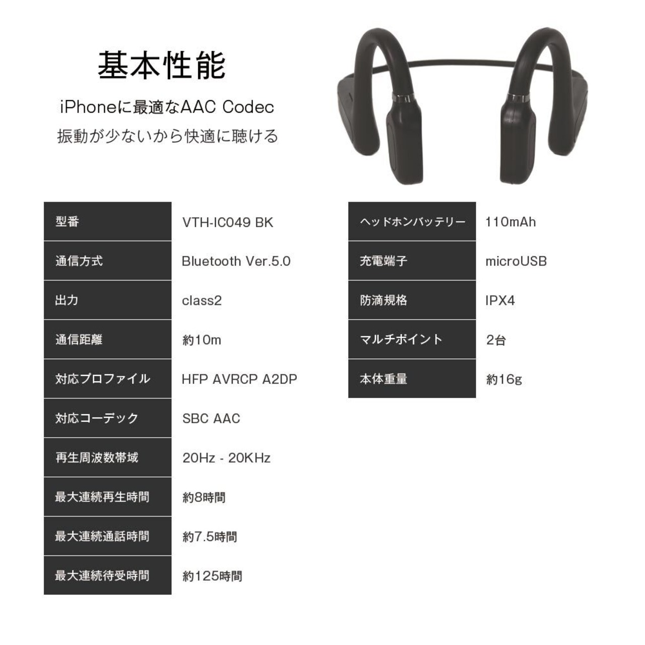 空気伝導 イヤホン bluetooth ワイヤレスイヤホン [ 完全ワイヤレスイヤホン VTH-IC049 ] 耳をふさがない ブルートゥース イヤホン スポーツ ジョギング 運動 通勤 通学 AAC IPX4