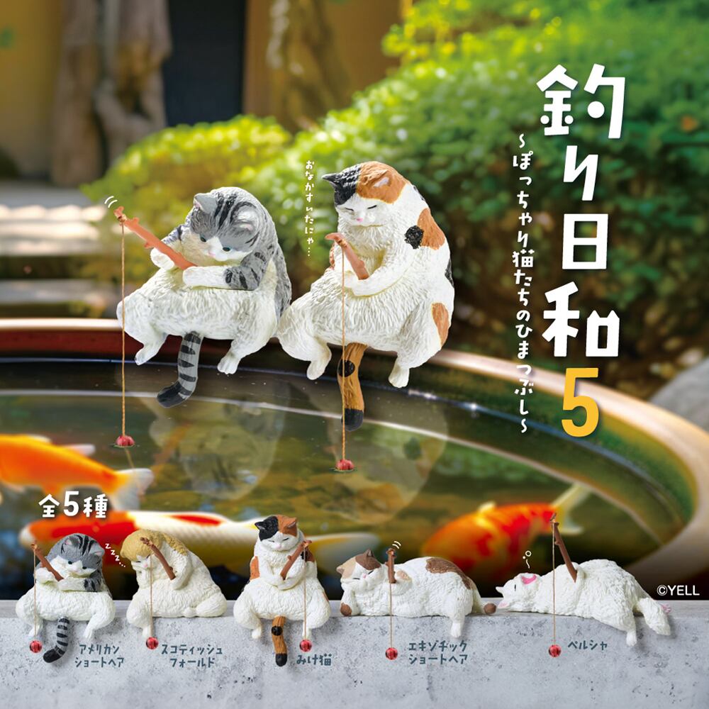 【5種類セット】エール ガチャ 釣り日和5 〜ぽっちゃり猫たちのひまつぶし〜 ネコ 猫 かわいい アメリカンショートヘア スコティッシュフォールド みけ猫 エキゾチックショートヘア ペルシャ フィギュア カプセルトイ ガチャガチャ ガチャポン