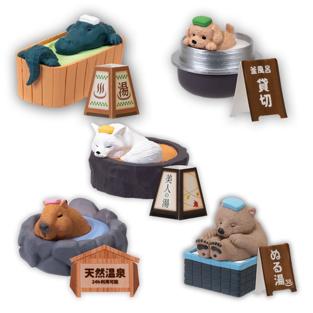 【5種類セット】エール ガチャ かわいい ただいま入浴中〜湯けむり桃源郷〜 コンプリート アリゲーター トイプードル 白キツネ カピバラ くま