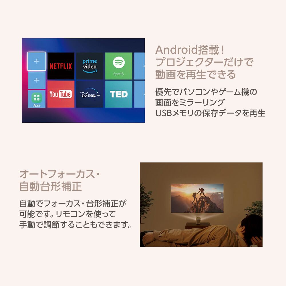 ●Android搭載でプロジェクターだけで動画を再生できる