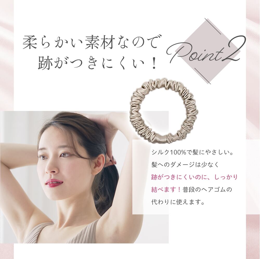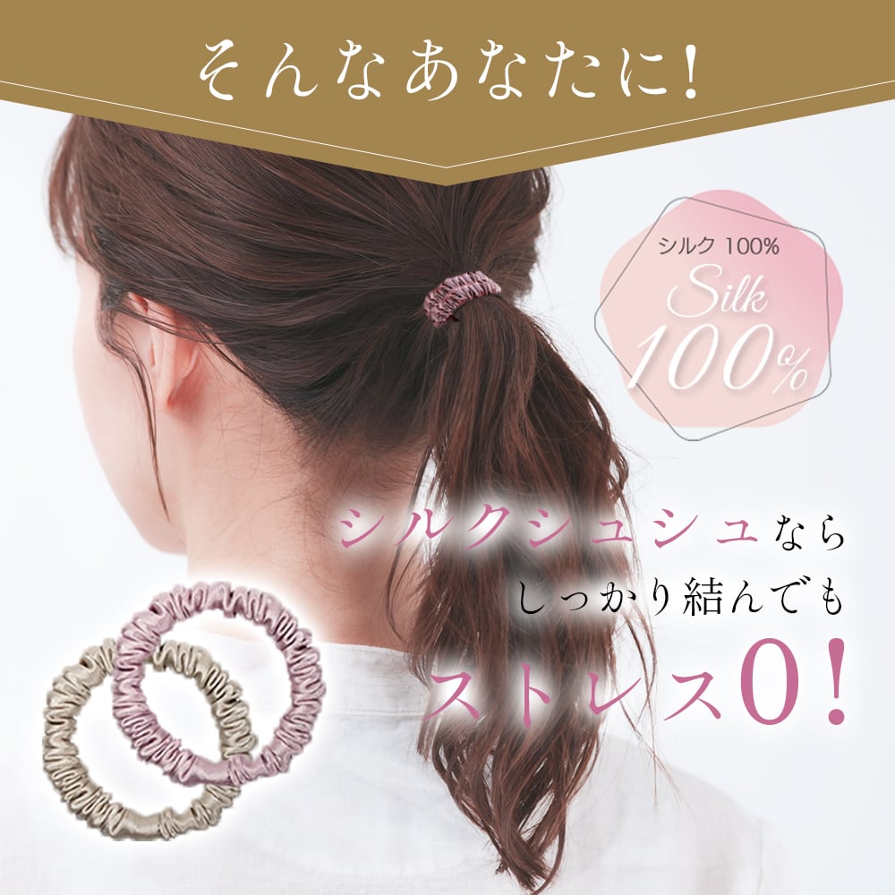●シルク100%で髪へのダメージは少ないけどしっかり結べる!
