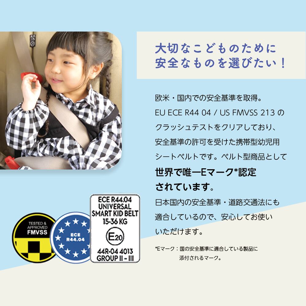 ●Eマーク適合 世界最軽量の携帯型幼児用シートベルト