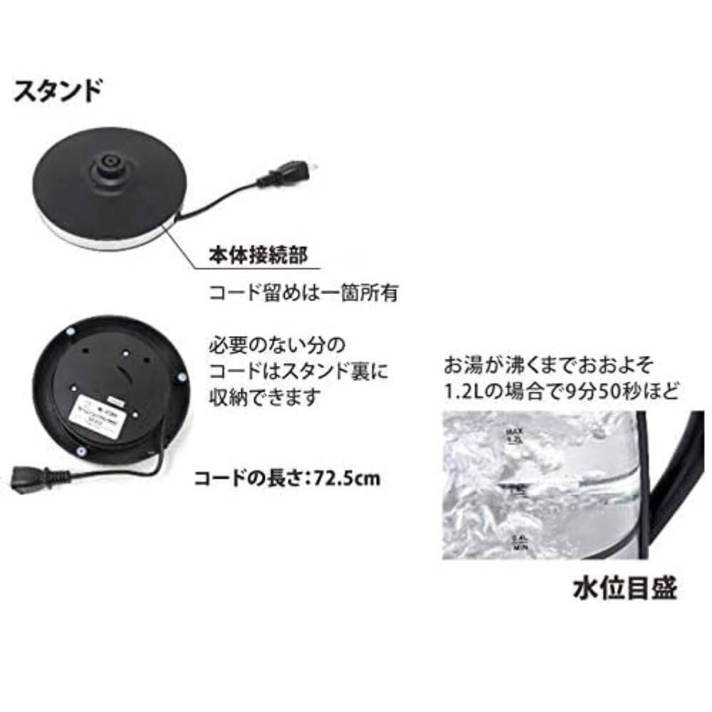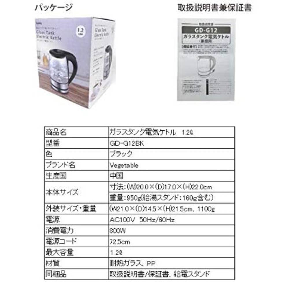 ケトル おしゃれ ガラス製 Vegetable ガラスタンク 電気ケトル 1.2L GD-G12 コーヒー お茶 朝食 空焚き防止 騰自動OFF機能 安全 自動オフ 結婚祝い ギフト 新生活 一人暮らし プレゼント お祝い 母の日 プレゼント