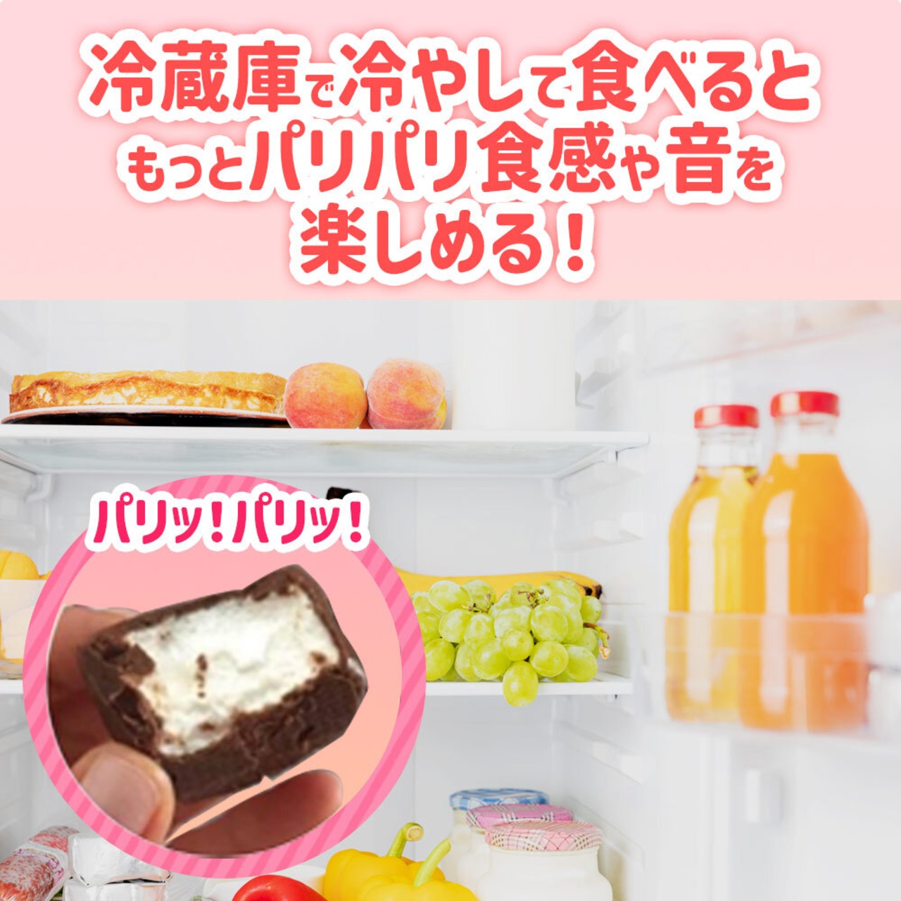 ●冷蔵庫で冷やして食べるともっとパリパリ食感や音を楽しめます