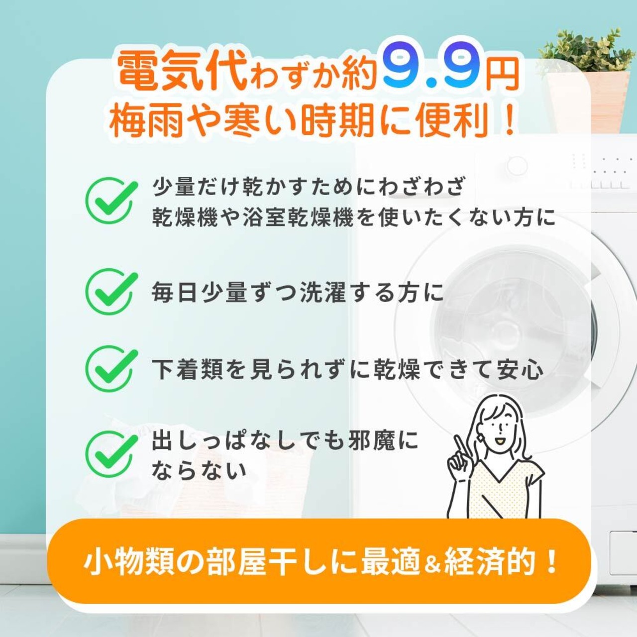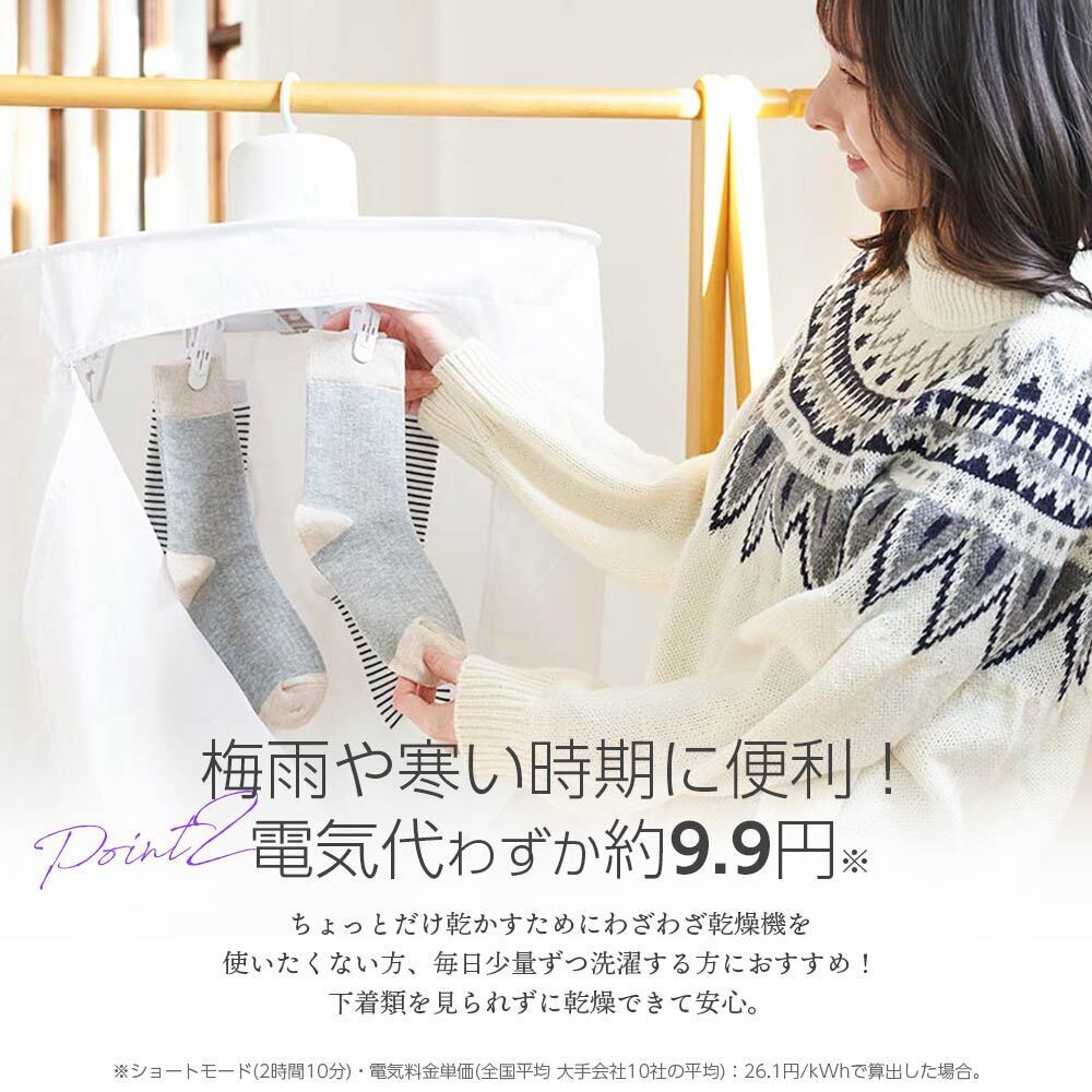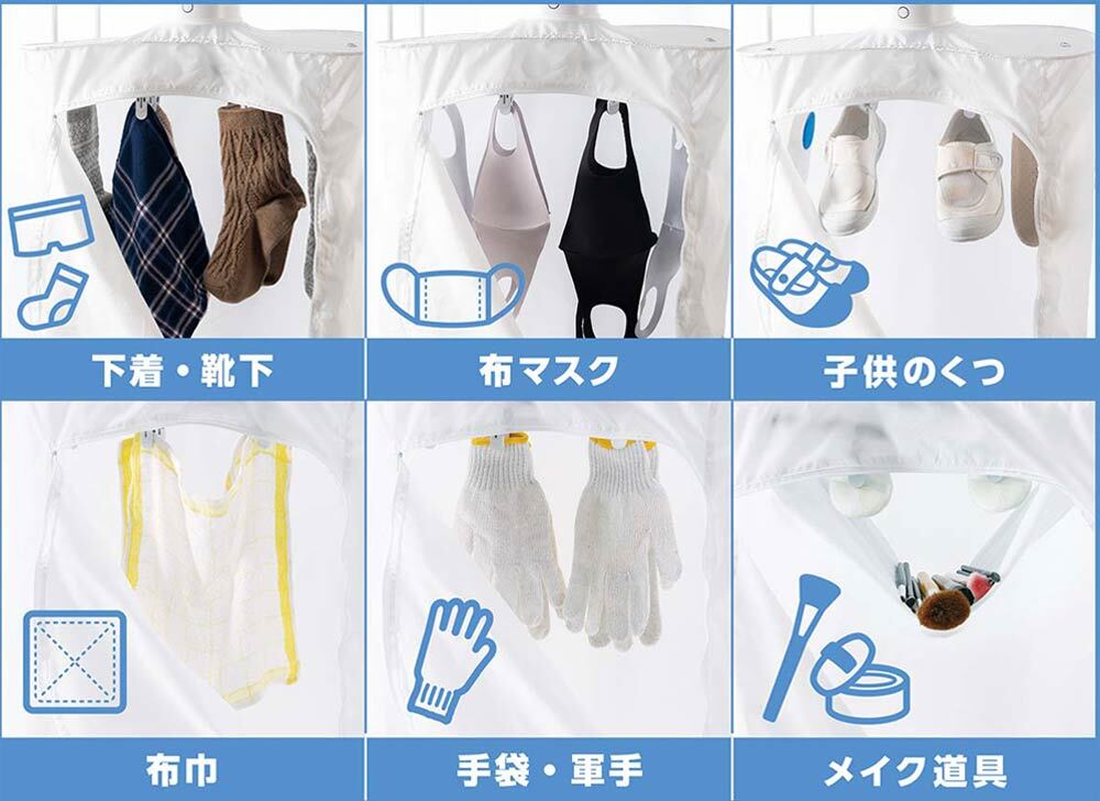●下着・靴下・布マスク・子供のくつなど、すぐに乾かしたい小物を温風で乾燥。
