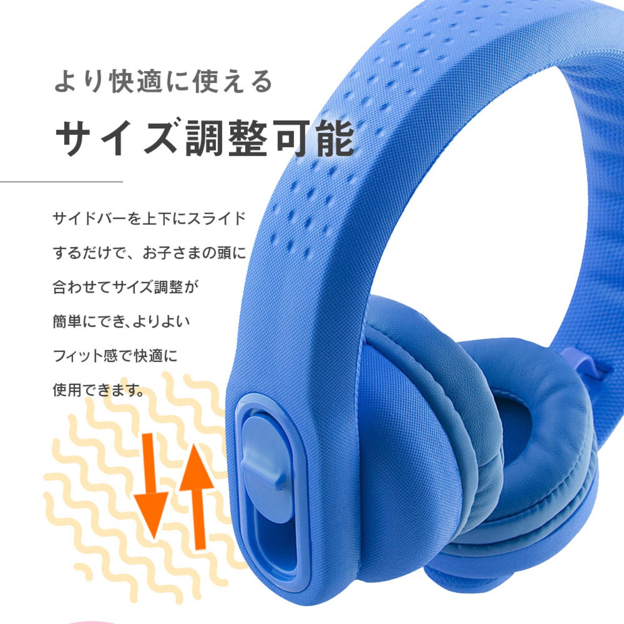 ●サイドバーを上下にスライドするだけで、お子さまの頭に合わせてサイズ調節が可能
