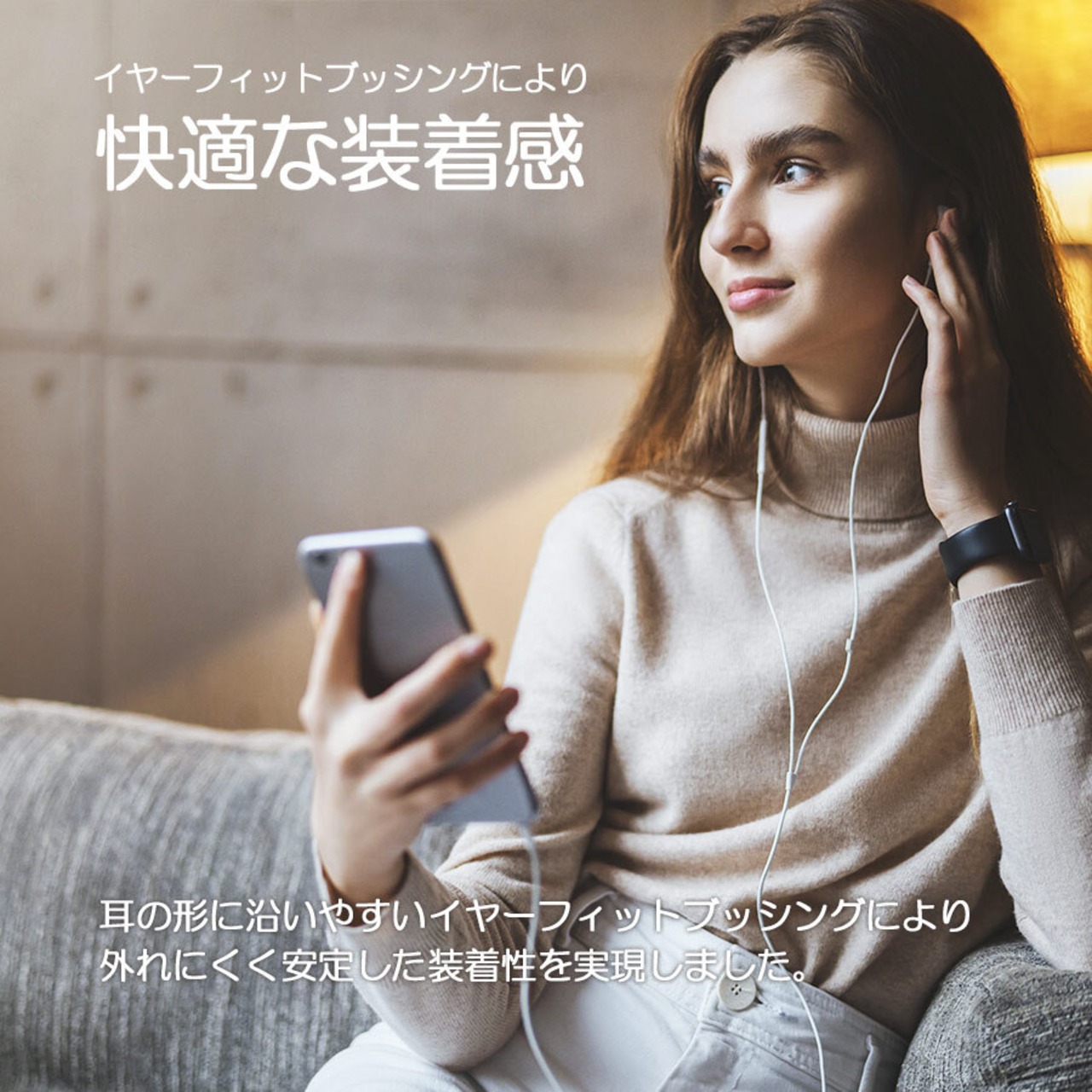 耳の奥まで装着することで高い遮音性を実現。快適な装着感と高音質を両立しました。