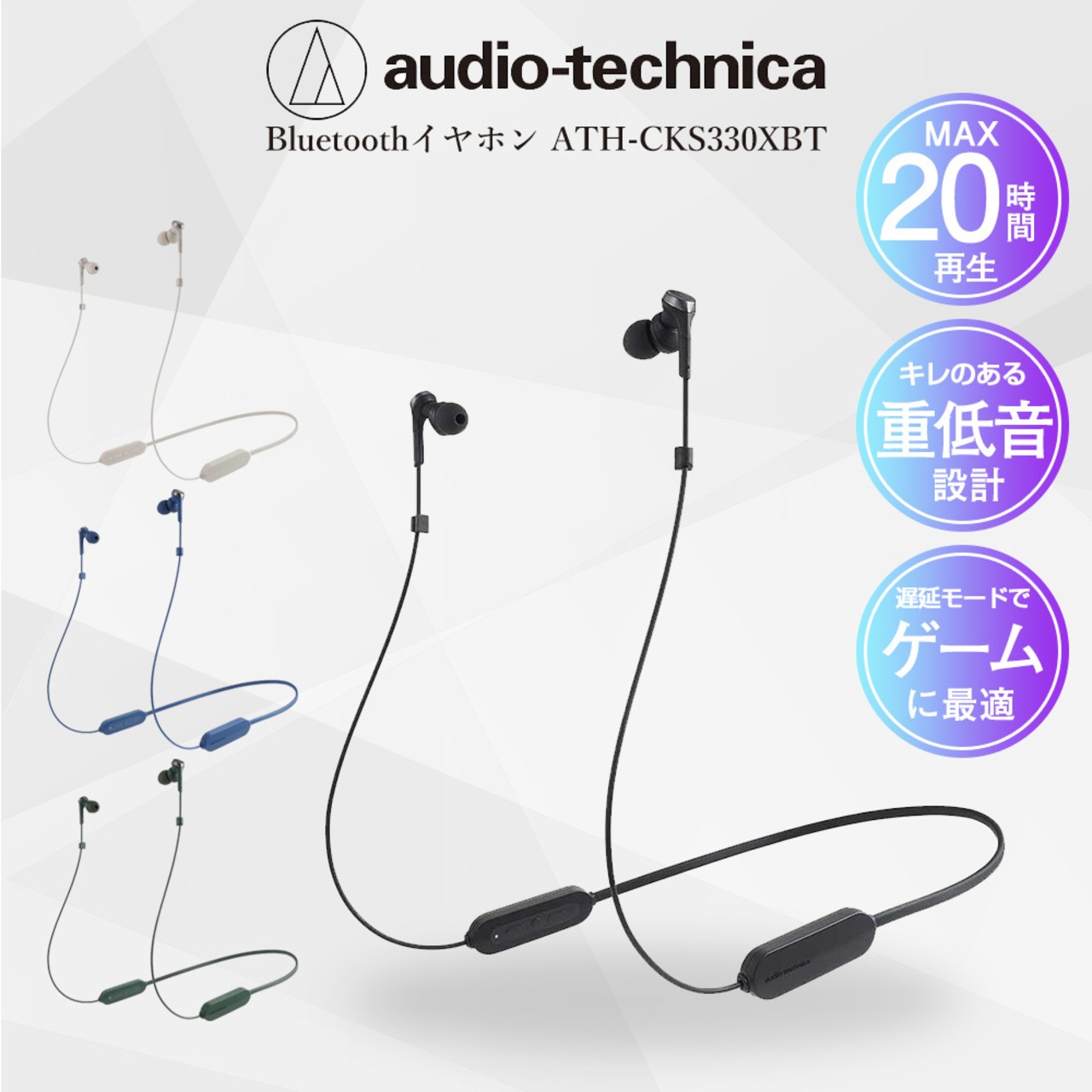 イヤホン Bluetooth オーディオテクニカ ATH-CKS330XBT ワイヤレス カナル型 リモコン マイク対応 低遅延モード搭載 重低音 ゲーム 動画視聴 音楽 父の日 母の日