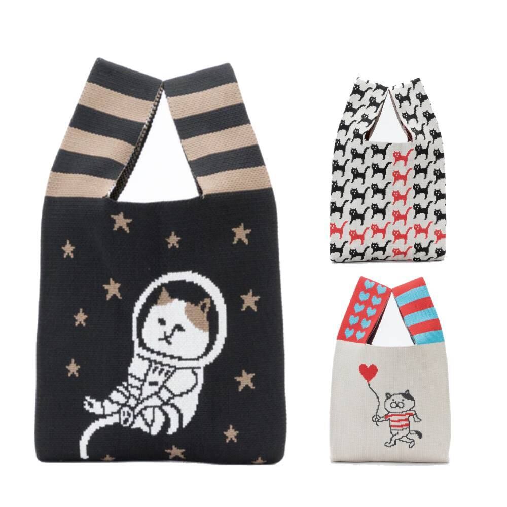 NEKONOBA ニットマルシェバッグ 小サイズ 猫グッズ ネコ ねこ かわいい 雑貨 プレゼント NYASA / ゆかいなネコ / 千猫格子