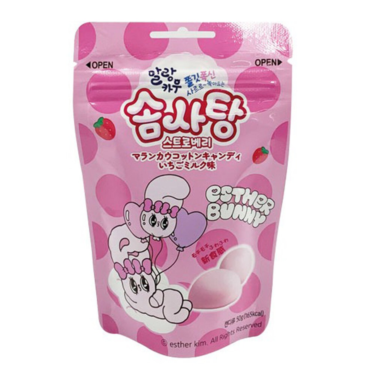 【もちもち ふわふわ 新食感!】飴 あめ キャンディー いちご味 苺味 イチゴミルク ストロベリーミルク [ ESTHER BUNNY エスターバニー マランカウ コットンキャンディ いちごミルク味 50g ] ソフトキャンディー韓国お菓子 韓国食品