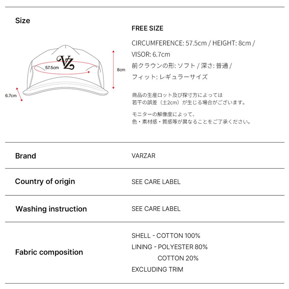 VARZAR バザール 韓国 帽子 キャップ 深め 小顔効果 顔が見えづらい 紫外線対策 レディース [Leaf VZ Monogram 5-Panel Ball Cap 1759 1760 1761 1762]